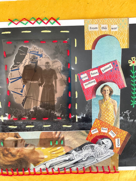 During the early days of the pandemic, Daniel turned to crafting as a way to make the best of their time spent in isolation. Although they initially found creative solace in the art of paper collage, they have now incorporated hand embroidery, sewing, and jewelry making into their sustainability-focused artistic practice. Daniel is a devotee of slow stitching, a type of mindful and meditative hand sewing centered around slowing down your thoughts and allowing your stitches to freely flow.