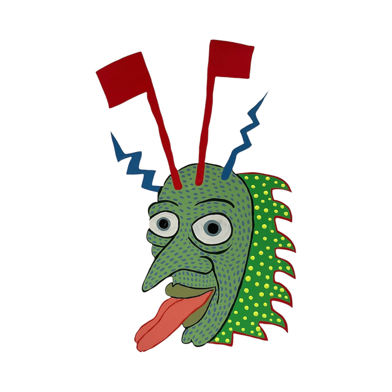 “Hoot Nanny Attention Yapper” by Steve Burnley. Enamel painting on metal cutout.