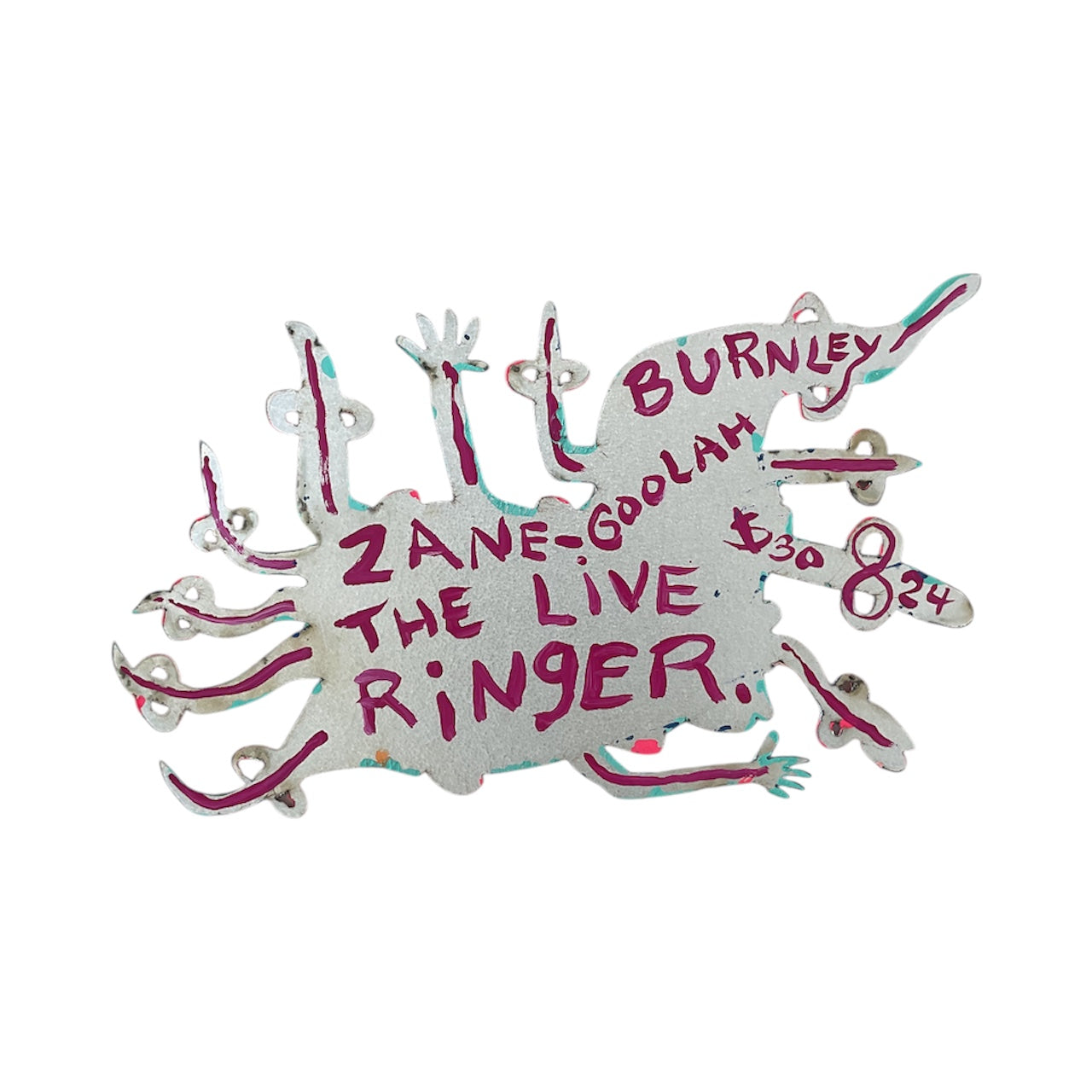 “Zane Goolah the Live Ringer” by Steve Burnley. Enamel painting on metal cutout.